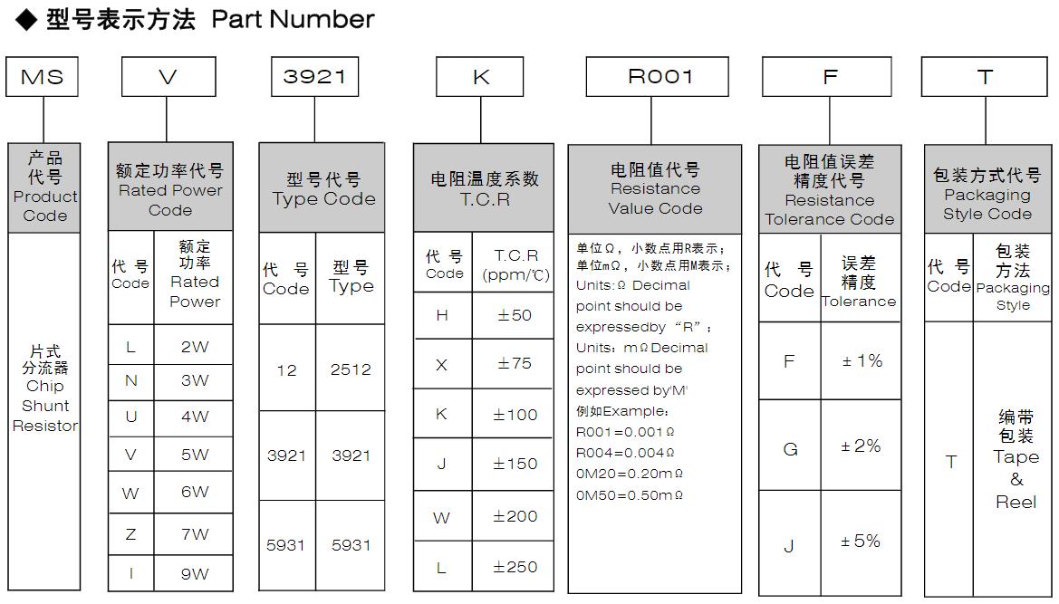 風(fēng)華高科片式分流電阻器型號(hào)命名規(guī)則: