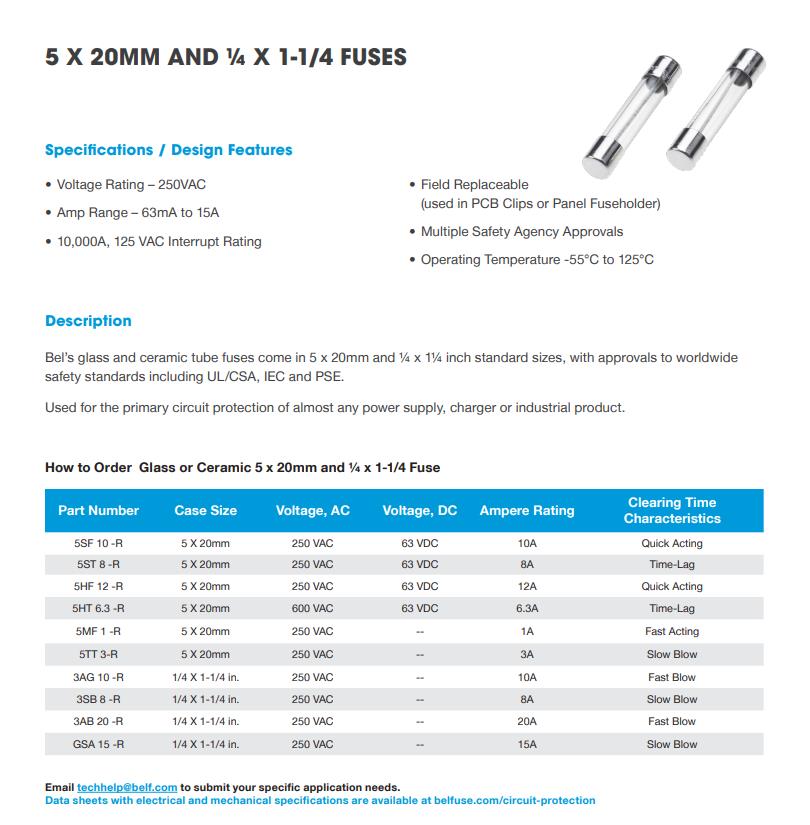 BEL的玻璃和陶瓷管保險絲有5 x 20毫米,?x 1英寸標準尺寸,批準在全球范圍內(nèi)