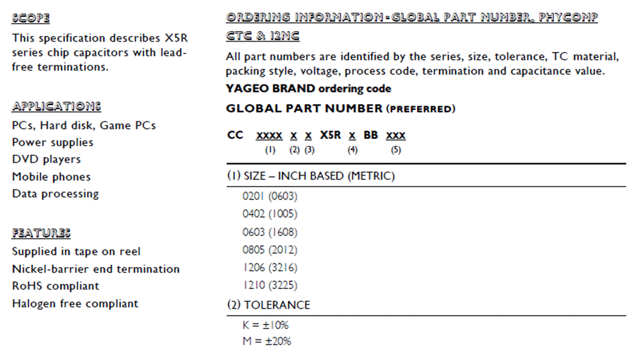電容公差:±10%(K)、±20%(M)