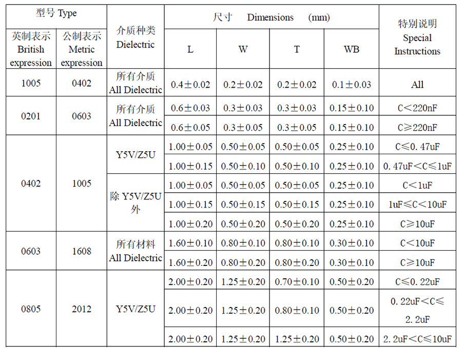 產(chǎn)品封裝:1005/0201/0402/0603/0805/1206/1210/1808/1812/2220/2225/3035